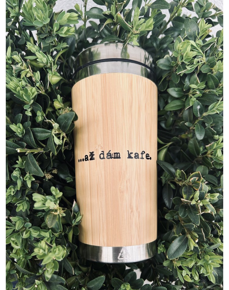 Bambusem potažený, dvoustěnný recyklovaný nerezový izolovaný termo hrnek s PP víčkem na pití