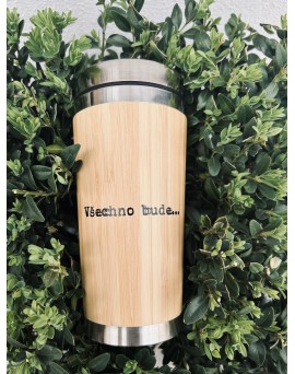 Bambusem potažený, dvoustěnný recyklovaný nerezový izolovaný termo hrnek s PP víčkem na pití,